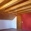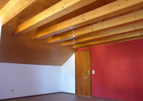 - Das Dachgeschoß mit sehr hohen Räumen (lichte Balken) ist mit hellem Holz ausgekleidet.