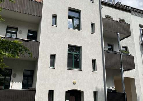 Die angebotene 2-Zimmer-Wohnung befindet sich im Vorderhaus eines denkmalgeschützten Mehrfamilienhauses aus dem Jahr 1906, das 1996 umfassend kernsaniert wurde.
