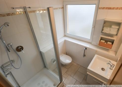 ebenerdiger Dusche, angrenzemdem Waschraum, separatem WC sowie Zugang in den Garten.