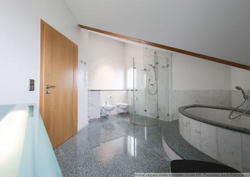 das Dachgeschoss mit Parkettboden, Bad mit Marmor/Granit.