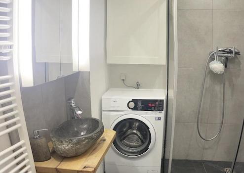 Tageslichtbad mit Dusche und integrierter Waschmaschine