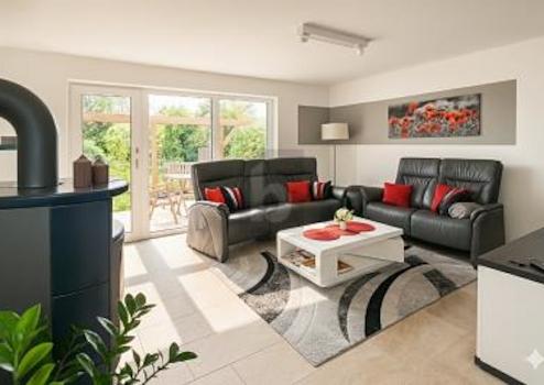 - Großzügiger, lichtdurchfluteter Wohnbereich mit Kamin