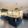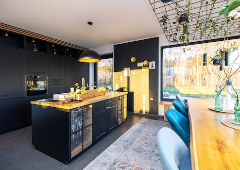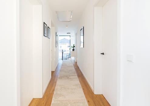 Sie werden von einem einladenden Eingangsbereich empfangen und gelangen direkt in den offenen Wohn- und Essbereich mit hochwertiger Einbauküche.