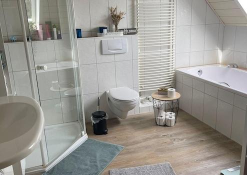 Die Dusche und Baddecke wurden in 2025 erneuert.