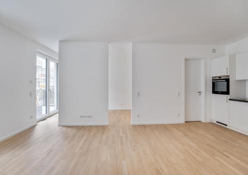Die sehr helle und ruhige Wohnung bietet bodentiefe Fenster und verfügt über einen Wohn- und Essbereich, welcher mit einer hochwertigen Küche ausgestattet ist und Zugang zum Balkon ermöglicht.