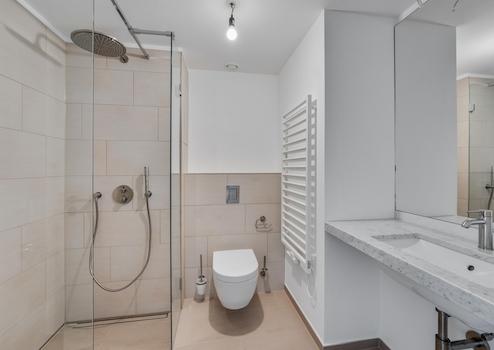 Die Studiowohnung bietet einen Schlafraum und ein sehr modern ausgestattetes Badezimmer mit Duschbad lädt zum Entspannen ein.