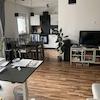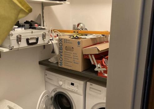 Küchenbereich , ein großes Schlafzimmer und ein Kinderzimmer oder Büro. Außerdem verfügt die Wohnung über eine Abstellkammer, in der auch Waschmaschine und Trockner