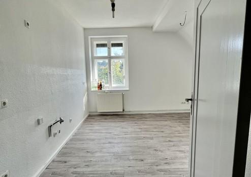 Die Wohnung wurde im Jahr 2023 kernsaniert. Derzeit liegt auf dem Dielenbogen Vinylbelag.