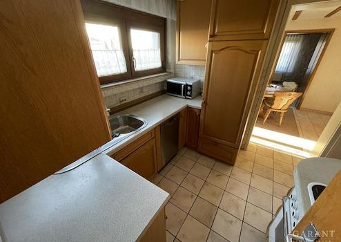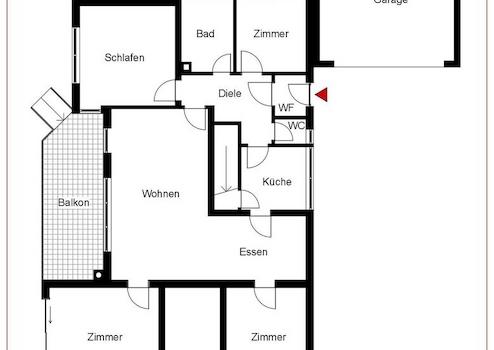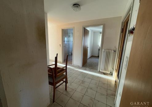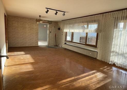 Die ca. 116 Quadratmeter sind auf vier Schlafräume, eine Küche, ein Badezimmer, ein WC, einen Windfang und das geräumige Wohnzimmer verteilt. Aus dem Wohnzimmer kommen Sie auf den großen Balkon und von dort in den Garten. Die dazugehörige und unterkellerte Garage befindet sich direkt neben dem Hauseingang.