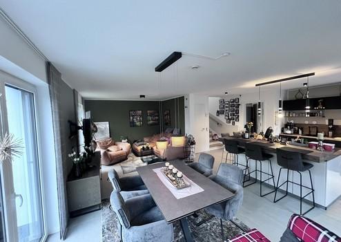 Sie bietet 4 Zimmer mit modernem Grundriss, d. h., der Küchenbereich ist ins Wohn- Esszimmer integriert.