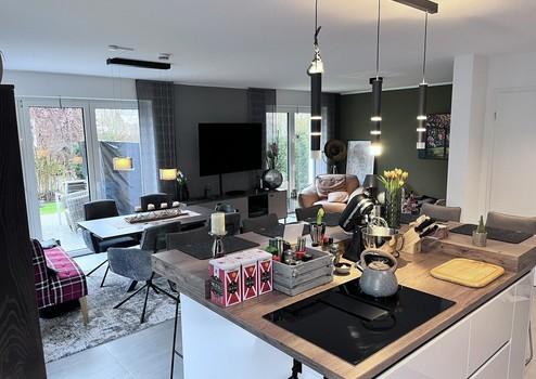 Die DHH mit 128 qm Wohnfläche wurde 2023 in ruhiger Südlage zentrumsnah auf einem 295 qm großen Grundstück als KfW- Energiesparhaus mit eingewachsenem Garten Weitblick errichtet.