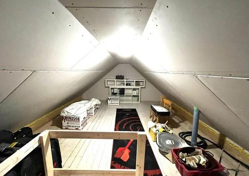 Der große Dachboden bietet voll isoliert viel Stauraum – die DHH ist nicht unterkellert.