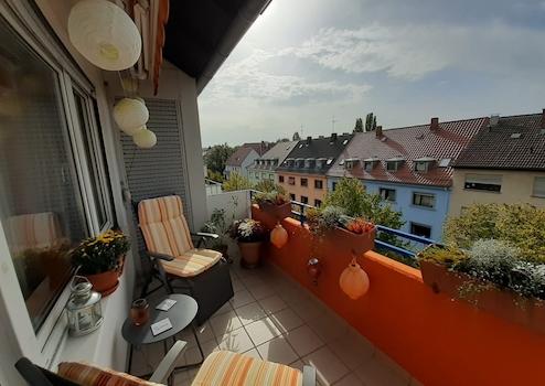 Auf dem West-Balkon können Sie ab dem frühen Nachmittag die Sonne und abends den Sonnenuntergang genießen. Im zusätzlichen Abstellraum können unter anderem Auflagen von Balkonmöbel verstaut werden. Eine Markise spendet an heißen Sommertagen angenehm Schatten.