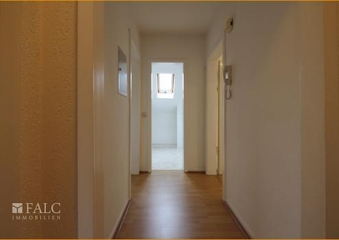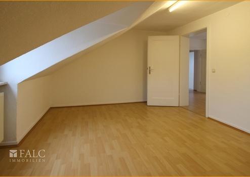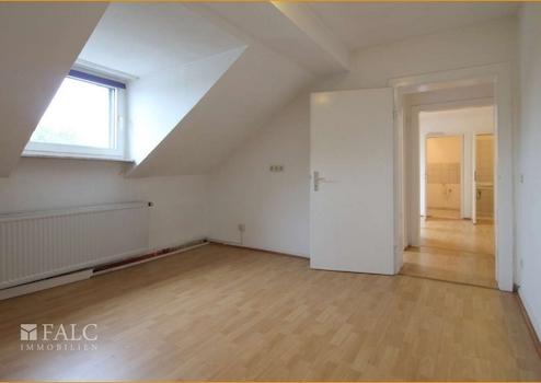 Sie gelangen über das Treppenhaus in das Dachgeschoss. Die Wohnung erstreckt sich über die komplette Etage dieses Vier-Familienhauses. Das Wohnzimmer, die beiden Schlafzimmer und das WC werden vom zentralen Flur erschlossen. Das Esszimmer mit offener Küche erreichen Sie über das Wohnzimmer. Das zeitlose Badezimmer verfügt über eine Dusche und ein Waschbecken. Das WC und ein weiteres Waschbecken befinden sich in einem separaten Raum. Ein Abstellraum ergänzt diese Dachgeschosswohnung.