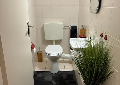Helles Badezimmer sowie ein zusätzliches Gäste-WC