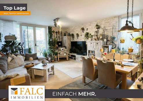 Der Wohn- und Essbereich bildet das Herzstück der Wohnung. Das Wohnzimmer ist zur Terrasse ausgerichtet und verfügt über besonders große, tief angesetzte Fensterflächen. Diese sorgen für eine außergewöhnlich gute Belichtung und verleihen dem Raum eine offene, freundliche Atmosphäre mit angenehmer Großzügigkeit. Der direkte Zugang zur Terrasse schafft einen fließenden Übergang zwischen Innen- und Außenbereich und erweitert den Wohnraum spürbar.