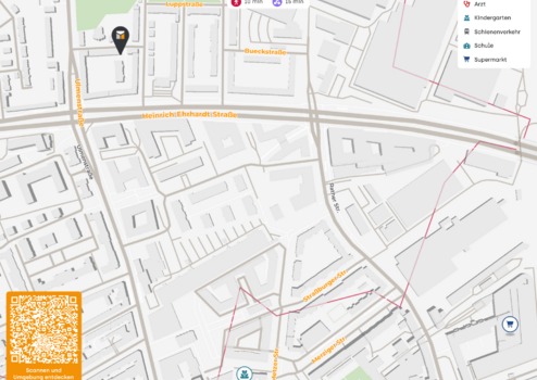 Trotz der urbanen Nähe bietet die Umgebung Raum zum Durchatmen. Der nahegelegene Rudolf-Lupp-Platz sowie weitere Grün- und Spielflächen schaffen wohnnahe Erholungsmöglichkeiten – ideal für eine kurze Auszeit im Freien.