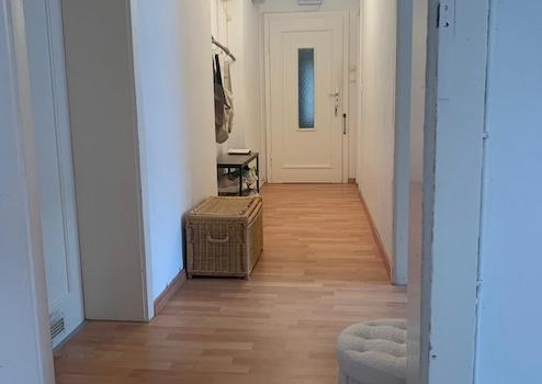 Bereits beim Betreten empfängt Sie ein großzügiger, klar strukturierter Flur, von dem aus ein Großteil der Räume erreichbar ist. Das Wohnzimmer ist als Durchgangszimmer gestaltet und verbindet die einzelnen Wohnbereiche harmonisch miteinander. Die Wohnung präsentiert sich in einem ordentlichen und gepflegten Zustand.