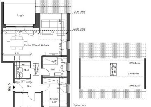 Erstbezug: stilvolle DG Wohnung mit großzügiger Loggia