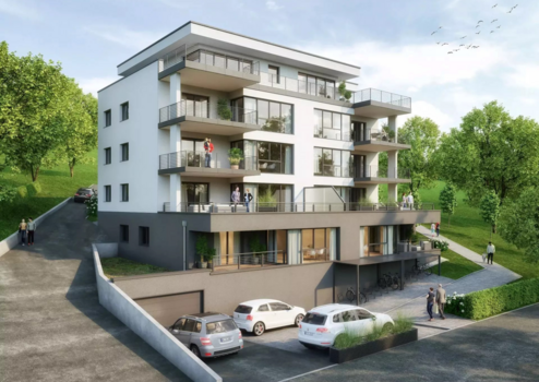 Das Objekt entsteht am Ende einer Sackgasse ohne jeglichen Durchgangsverkehr. Durch die Hanglage ist eine schöne Aussicht gegeben.