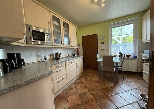 eine helle, gepflegte Küche mit ausreichend Platz zum gemeinsamen kochen und verweilen,
