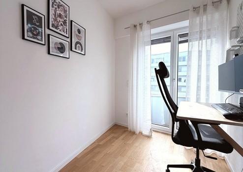 Das helle Kinderzimmer ist vielseitig nutzbar. Zusätzlich bietet die Wohnung ein praktisches Arbeitszimmer, das sich ideal für Homeoffice oder als zusätzlicher Rückzugsraum eignet.
