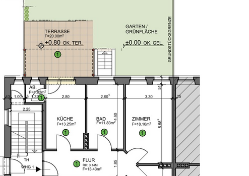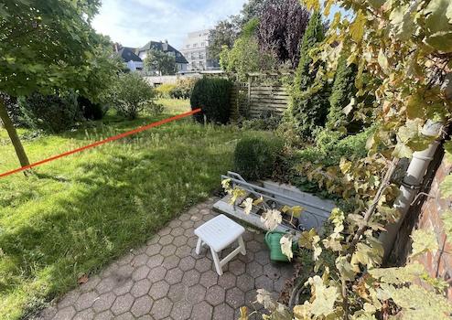Im hinteren Teil des Gartens wurde ein Neubau geschaffen, welcher gerade in der finalen Fertigstellung ist. Anschließend wird ein Zaun beziehungsweise eine Hecke gesetzt, um die Abtrennung zu schaffen. Die Bilder in dieser Anzeige zeigen den ehemaligen Garten. Die Route eingezeichnete Linie zeigt das Ende des Gartenbereichs.