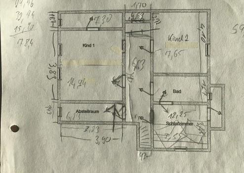 Im Obergeschoss befinden sich 3-4 Zimmer, Flur, Bad und ein Balkon