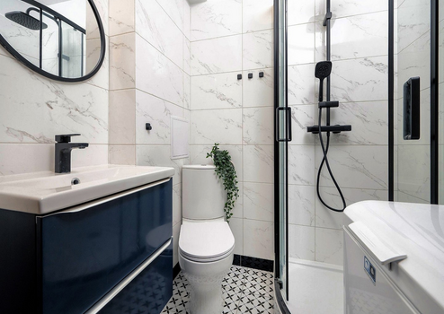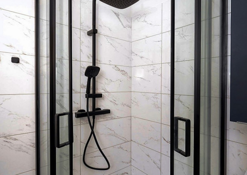 Komplett saniertes Bad mit Viertelkreisdusche mit Glasabtrennung