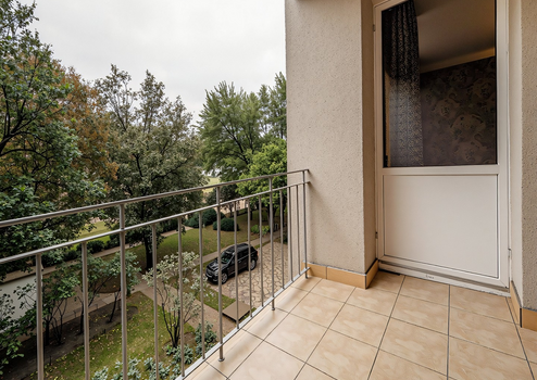 Die Räumlichkeiten bestehen aus einer Küche, Wohnzimmer, Schlafzimmer, Bad und Flur. Zusätzlich gibt es einen Zugang zum Balkon vom Wohnzimmer aus. Die Wohnung ist sehr ruhig gelegen. Der Balkon und alle Fenster blicken auf eine weitläufige, eingezäunte Grünfläche mit zahlreichen alten Bäumen. Durch die Süd-Ost-Ausrichtung der Fenster sind die Räumlichkeiten sehr gut belichtet.