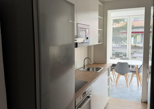 Neue Küche mit zwei Zeilen und zwei großen neuen Bosch Kühl-Gefrierkombinationen.