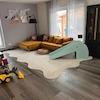 Der zentrale Lebensmittelpunkt des Hauses ist das großzügige Wohnzimmer mit offener Küche. Die Küche wurde von der Tischlerfirma Tille aus Zeven angefertigt und verfügt über einen Dampfgarer und einen Quooker sowie ein Induktionskochfeld mit integrierter Absaugung von namhaften Deutschen Marken.