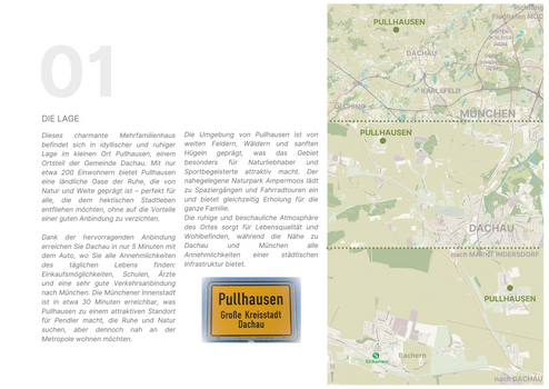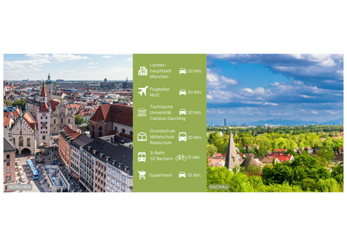 Die ruhige Lage und die Nähe zu Dachau und München machen diese Immobilie zu einem perfekten Ort für naturnahes Wohnen, ohne auf die Annehmlichkeiten einer guten Infrastruktur verzichten zu müssen.