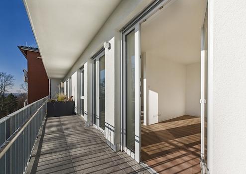Teilweise Balkon oder Terrasse mit Blick ins Grüne und in die Umgebung