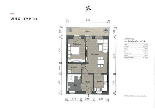 Die genauen Grundrisse und Größen finden Sie in der Anlage anhand der Wohnungsnummer / Typ Größe.
