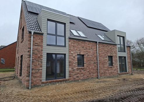 wir vermieten zwei Neubau Doppelhaushälften (ca. 129 qm) KfW 40 in 25866 Mildstedt ab dem 01. April 2026. Das Haus verfügt über eine moderne Einbauküche, Fußbodenheizung und eine Luftwärmepumpe. Zu jeder Haushälfte gehört eine sonnige Terrasse, Gartenanteil (ca. 400 qm) und ein begehbarer Dachboden. Ein Carport mit Abstellraum sowie ein Stellplatz stehen optional zur Verfügung. Der Garten wird angelegt.