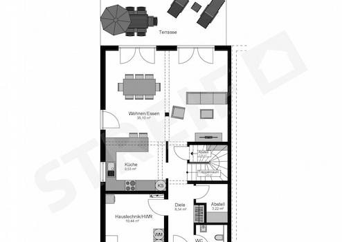 Wir planen nach Ihren Vorstellungen, der Grundriss lässt sich Innen noch verändern. Auch die Hausbreite wäre noch anpassbar.