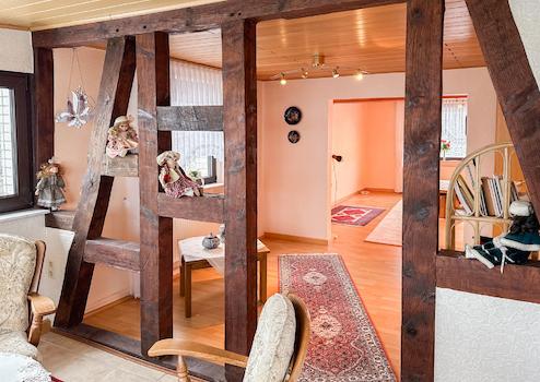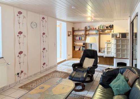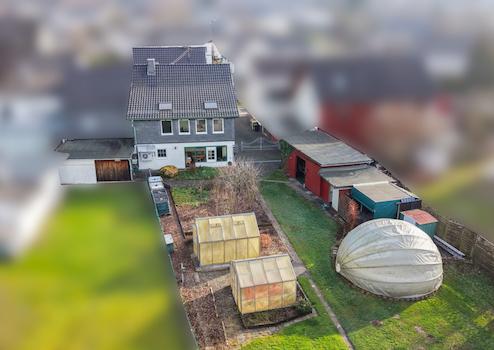 Auf dem großzügigen Grundstück von ca. 1.124 m² befinden sich zwei Einfamilienhäuser mit äußerst vielseitigen Nutzungsmöglichkeiten. Ob Wohnen & Arbeiten, Mehrgenerationenwohnen, Teilvermietung oder Kapitalanlage – nahezu alle Nutzungskonzepte sind denkbar. Besonders hervorzuheben ist der große Garten, der nach hinten an den Ortsrand grenzt. Das Vorderhaus (Haus 1) aus schätzungsweise 1900/10 verfügt über rund 130 m² Wohnfläche, ist voll unterkellert und das Dachgeschoss ist ausgebaut. Durch den vorhandenen Vorder- und Hintereingang sowie den Grundriss ist eine Aufteilung in zwei Einheiten möglich; zwei separate Stromzähler sind bereits vorhanden. Die ehem. Scheune (heute Haus 2), wurde 1991 zum heutigen Wohnhaus umgebaut, liegt in zweiter Baureihe und grenzt direkt an das Gartengrundstück. Im Erdgeschoss befinden sich Heizung, Garage sowie ein verglaster Sitzbereich mit Sommerküche. Die Wohnräume liegen im Obergeschoss. Der Speicher bietet zusätzliches Ausbaupotenzial. Das Grundstück überzeugt mit zahlreichen Sitzplätzen, zwei Gewächshäusern, Beeten, Pool mit Filteranlage, Regenwassertanks, Teich sowie mehreren Schuppen- und Werkstattbereichen und bietet insgesamt viel Platz für unterschiedlichste Bedürfnisse.