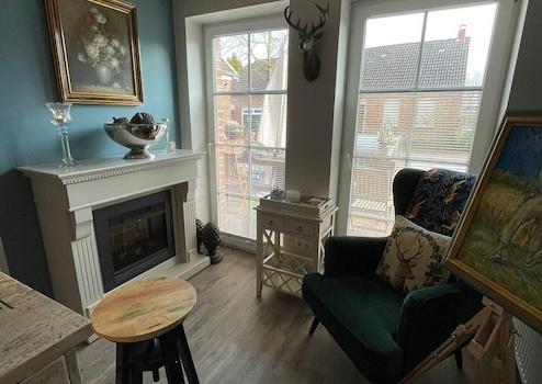 Diese barrierefreie Erdgeschosswohnung mit 3 Schlafzimmer und 3 Bäder, offene Wohnküche mit großem Essbereich, Kaminzimmer mit Hausbar, Abstellkammer, Wäscheraum, 2 Terrassen hat insgesamt 220 m² Wohnfläche und befindet sich an der Nordseeküste, nur 6 km von Hafen Greetsiel, in