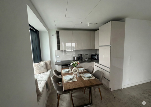 Dieses Apartment wird höchsten Ansprüchen an Design und Funktionalität gerecht und präsentiert sich in einem absolut neuwertigen Zustand (Baujahr 2018). Das Herzstück bildet der lichtdurchflutete Wohnbereich mit offener, maßgefertigter Einbauküche (inklusive hochwertiger Elektrogeräte) und direktem Zugang zur verglasten Loggia, die den Wohnraum nahtlos zum Süd-West-Balkon erweitert.