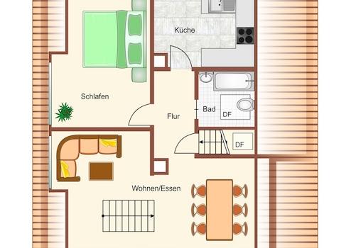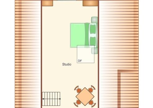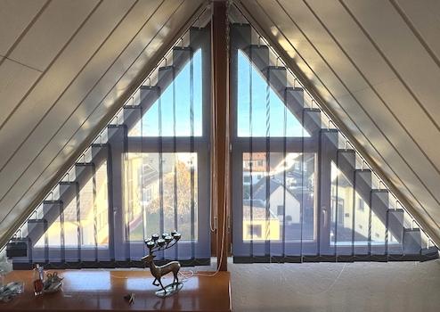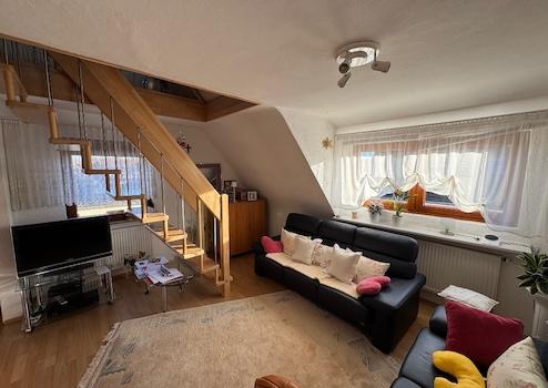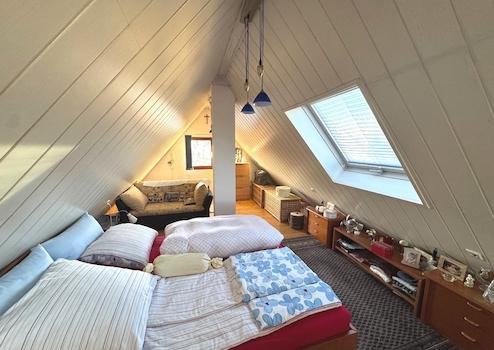 - im DG I gibt es 2,5 weitere Zimmer plus ein ausgebautes Studio mit Giebelverglasung im DG II. Dieses Studio wurde von den jetzigen Eigentümern ausgebaut aber nicht genehmigt