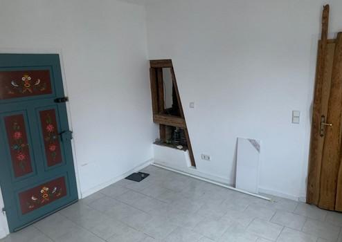 antike Kacheln im Hausflur, Holzdielenboden, weiße Fließen, sichtbare Deckenbalken, Lehmsteine in Fachwerk. Dimmbare LED-Deckenbeleuchtung im Bad installiert, LED-Deckenbeleuchtung in 1 weiteren Raum (4 Zimmer, Küche & Bad).
