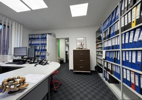 Im Erdgeschoss stehen ca. 302 m² Gewerbefläche zur Verfügung. Diese verteilen sich auf eine Praxis für Psychotherapie sowie eine Anwaltskanzlei/Notariat. Die psychotherapeutische Praxis wurde im Jahr 2020 umfassend renoviert und präsentiert sich in einem zeitgemäßen Zustand. Die Heizungsanlage im Erdgeschoss wurde im Jahr 2016 erneuert. Die Anwaltskanzlei befindet sich in einem gepflegten Gesamtzustand. Besonders hervorzuheben ist hier die langfristige Sicherung der Mieteinnahmen: Der Mietvertrag des Notariats wurde um weitere fünf Jahre verlängert und läuft aktuell bis zum 31.05.2032.