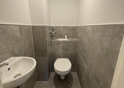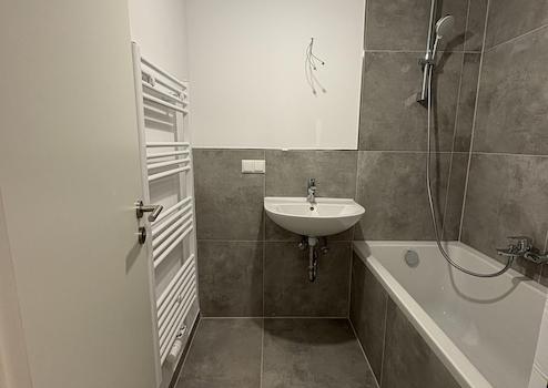 Besonderes Augenmerk verdient die neue Einbauküche, die mit weißen Fronten und einer Arbeitsplatte in Holzoptik ausgestattet ist. Ein modernes Cerankochfeld sowie ein neuer Backofen sind bereits integriert und sofort einsatzbereit. Das Sanitär wurde ebenfalls vollständig runderneuert: Sowohl das Hauptbad als auch das separate Gäste-WC bestechen durch großformatige Fliesen in edler, anthrazitfarbener Stein-Optik, die einen exklusiven Kontrast zu den weißen Sanitärelementen bilden. Ein moderner Handtuchheizkörper und eine komfortable Badewanne runden das Wellness-Gefühl ab.