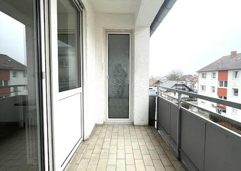 Der schöne Balkon mit Blick ins ruhige Wohnumfeld lädt zum Entspannen ein und erweitert den Wohnraum an warmen Tagen.