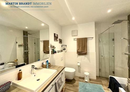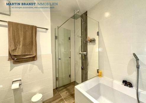 - Modernes Bad mit Wanne und Dusche, WC, raumhoch gefliest