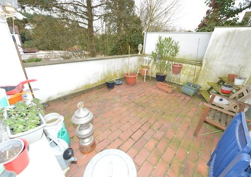 Ein besonderes Highlight ist die angrenzende Terrasse auf der Rückseite des Hauses, die direkt von der Küche aus zugänglich ist. Sie bietet eine ideale Möglichkeit, den Tag entspannt im Freien zu beginnen oder laue Sommerabende mit Familie und Freunden zu genießen. Ein echter Mehrwert für alle, die gerne Zeit an der frischen Luft verbringen.