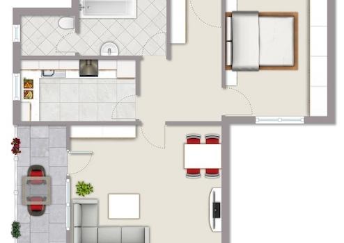 Die Wohnung bietet Diele/Garderobe, Schlafzimmer, Wohn-/Esszimmer mit