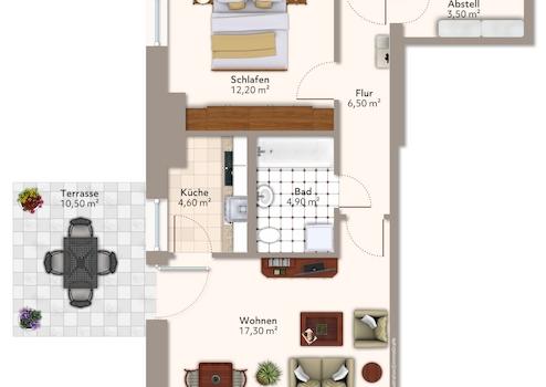 - 2-Raumwohnung mit 54,25m² Wohnfläche