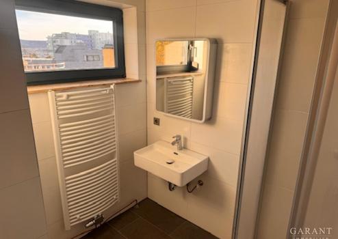 * Bad mit Dusche, Handwaschbecken, WC und Handtuchheizkörper